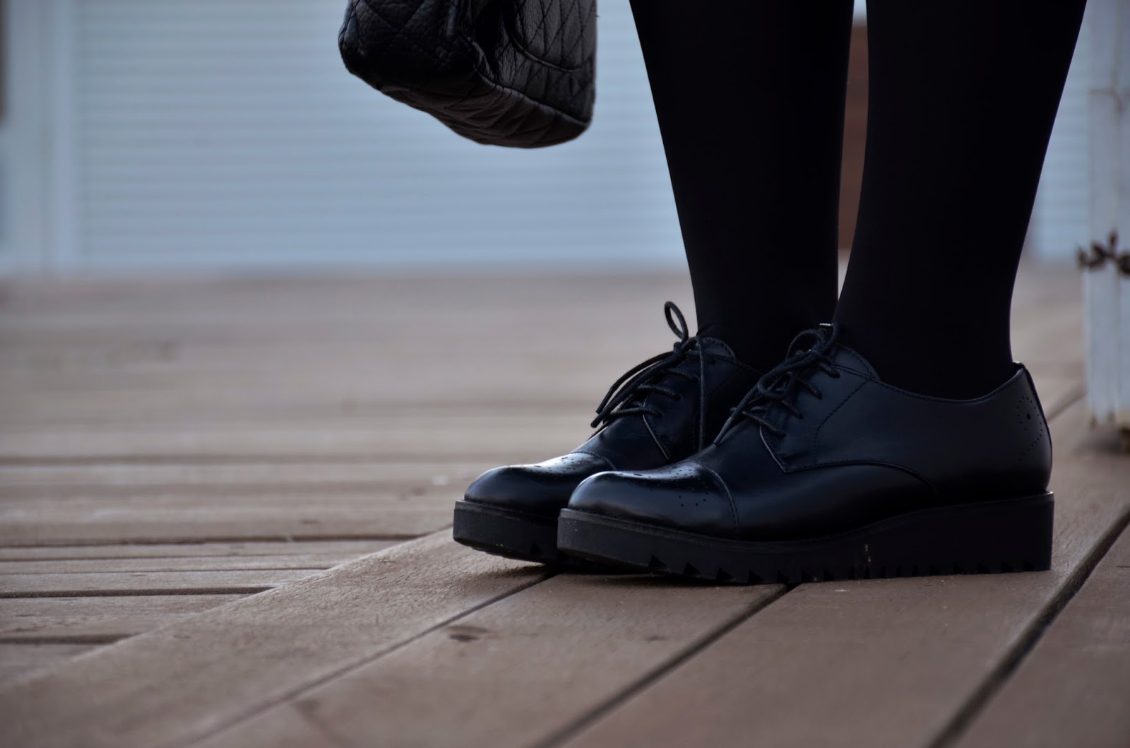 Pentru outfit: dacă vreţi un look mai elegant, fără tocuri, investiţi într-o pereche de pantofi brogues. M-am întors cu ei din Londra şi am sentimentul ăla de "cel mai bun lucru cumpărat EVER"!